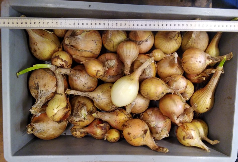 The bulbs grew well, both indoors and outdoors, into fine large-ish onions. I am not sure if 2025 was just a good year for them or if the plants themselves improved year on year since the remaining bulbs no longer seem to degrade in typical biennial fashion. As mentioned earlier, all of the onions that split in the greenhouse were also allowed to produce seed heads. That seed has now been collected and will be used as the basis for the 2026 spring planting.